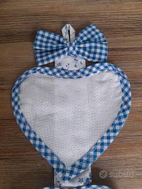 Fiocco nascita per maschietto in tela aida da ricamare a punto croce.Lunghezza totale cm.42. Consegna a mano.