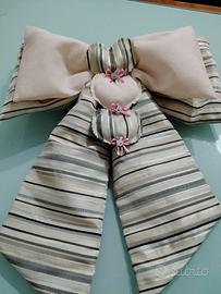 Fiocco Nascita per bambina fatto a mano con stoffa a righe rosa e grigio con fiocco centrale rosa completa il tutto 3cuori di stoffa simile al fiocco