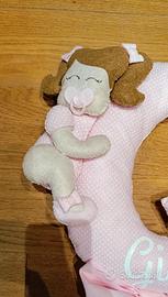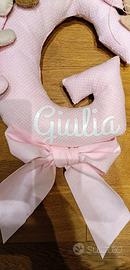 Vendo bellissimo fiocco nascita fatto a mano e personalizzato con il nome "Giulia". Consegna a mano su Roma, zona Tuscolana metro A Giulio agricola o spedizione.