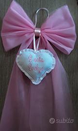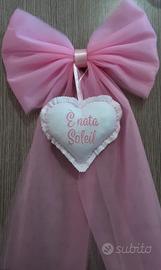 🌸 Fiocco nascita in tulle rosa con cuore ricamato