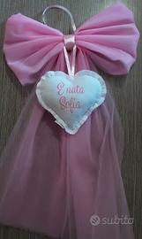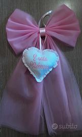 Fiocco nascita rosa in tulle con cuore centrale