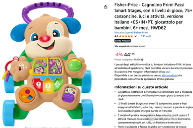 Vendo carrellino primi passi Fisher-Price “Cagnolino Ridi & Impara” per imparare a camminare con 2 modalità di gioco man mano che il bambino cresce: gioco da seduti o in piedi.