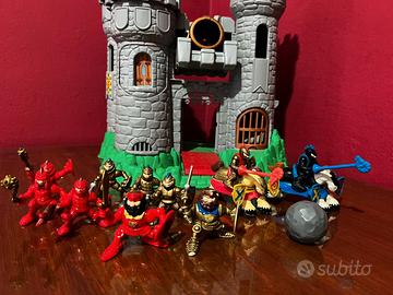 Giocattolo “Castello” della serie Grandi Avventure (Great Adventures) con 8 personaggi cavalieri originali, palla di cannone funzionante e due cavalieri e cavalli della giostra. Gioco vintage nostalgico.