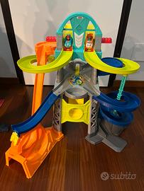 Fisher-Price, Little People, Mega Torre Scontri e Sfide, Pista con 2 Veicoli Giocattolo per Bambini 18+Mesi