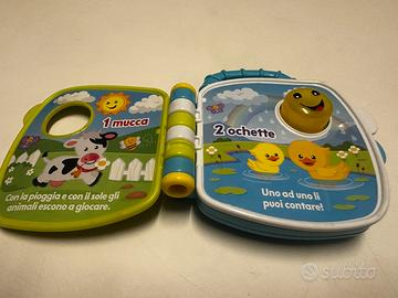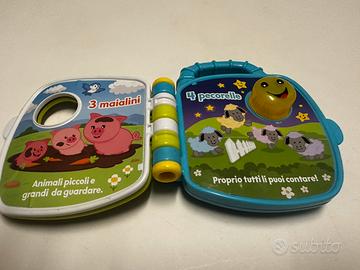 Questo giocattolo da portare con sé si illumina e riproduce vere note musicali, simpatici versi degli animali e divertenti canzoncine mentre il tuo bambino suona! Il Libro degli Animali 123 Ridi e Impara® è il primo libro perfetto per i piccoli "lettori". Ogni volta che girerà la pagina, troverà tantissimi volti amichevoli e divertenti luci e suoni, tra cui un'allegra canzone da cantare insieme per imparare tutto sugli animali, i numeri e tanto altro ancora. E con la sua maniglia per trasportarlo facilmente, il tuo bambino potrà portare con sé il suo libro preferito ovunque vada! Dove lo sviluppo entra in gioco™ Alfabetizzazione di base: trasportando, sfogliando e "leggendo" il loro libro, i bambini apprendono quanto è divertente leggere! Scienze: canzoni da cantare insieme e suoni divertenti fanno conoscere ai piccoli gli amici animali che vedono e i simpatici versi che emettono. Capacità di ragionamento: sfogliando le pagine e premendo il sole si attivano i divertenti suoni e luci, che introducono i bambini ai giochi causa-effetto! Condizioni come da foto