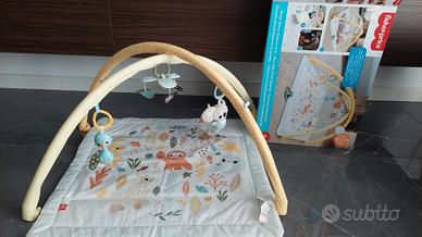 La palestrina neonato multisensoriale Fisher-Price è dotata di un colorato tappetino per le attività che segue la crescita del tuo bambino. È adatta per giocare distesi a pancia in su, sul pancino e da portare in viaggio. La palestrina è dotata di un arco con 6 giocattoli sensoriali riposizionabili, tra cui un morbido koala portatile con sonaglino e una giostrina trasportabile che può essere agganciata al passeggino per il divertimento in viaggio. Gli altri giocattoli sensoriali includono uno specchietto per imparare a conoscersi, un sonaglino a forma d'oca, un dentaruolo senza BPA a forma di falena e un morbido giocattolo frusciante che può essere riposizionato sull'arco della palestrina o utilizzato in viaggio per i momenti di gioco.