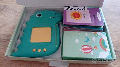 Simpatico giochino per cui il bambino deve inserire le tessere nel dinosauro e le parole vengono dette prima in italiano e poi in inglese, per gli animali anche con il verso. Oltre 100 parole su vari argomenti (cibo, trasporti, animali, meteo etc.). Il dinosauro sembra nuovo, una scatolina di parole non è mai stata usata, mentre un'altra ha delle tessere visibilmente usate ma ancora utilizzabili.