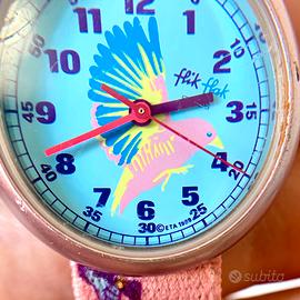 Mitico originale orologio Flik Flak, l’orologio svizzero che dal 1987 aiuta i bambini ad imparare a leggere l’ora.
