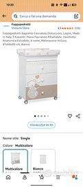 come da titolo vendo questo fasciatoio acquistato 2 anni fa su Amazon in ottime condizioni tenuto sempre con cura. presenta tutti i pezzi originali e non ci sono parti rotte. per le misure vedere le foto. possibilità di visionare l'oggetto a Roma in zona Monteverde o castelli romani.