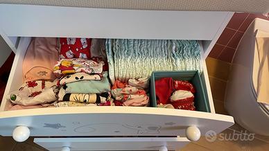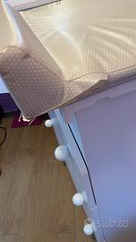 Il bagnetto fasciatoio in legno Elefantino di Foppapedretti è trasformabile in comoda cassettiera. È dotato di vaschetta anatomica per il bagnetto estraibile, tre ampi cassetti, piano ribaltabile con sistema di sicurezza ammortizzato e pratico materassino ( il lato basso dx e lievemente rovinato perché leggermente aperto come visibile foto allegate, assolutamente funzionante).
