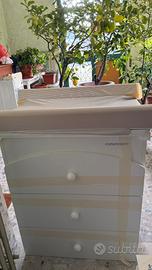 Set fasciatoio e Lettino in buone condizioni generali. Il fasciatoio include anche la vasca per il bagnetto. I cassetti sono ampi e funzionali. La gommapiuma presenta uno strappo. Il materasso è di ottima qualità è incluso.