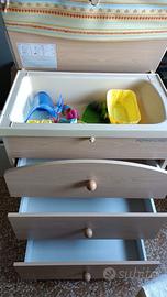 Bagnetto fasciatoio dotato di tre cassetti
