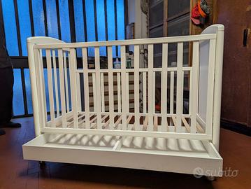 Vendo Foppapedretti - lettino a cancelli regolabili in altezza con cassetto porta biancheria con materasso in memory nuovo ( mai usato ) Dimensioni materasso CM 60 X CM 126