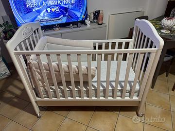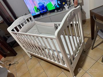 Anche la rete è regolabile a due altezze, per consentire un pratico uso anche quando il bimbo è neonato. Le testate del lettino hanno decorazioni con teneri animaletti, per un'eleganza senza tempo all'insegna delle tonalità classiche e delle forme arrotondate.