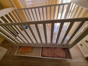 Lettino Foppapedretti Lucy, con cassettino estraibile e ruote.