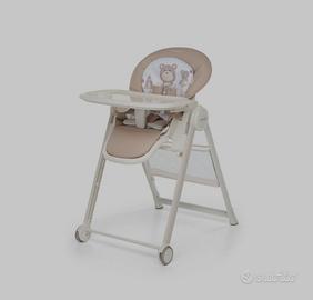 Dotato di seduta regolabile in altezza e schienale reclinabile multiposizione. Cinturine di sicurezza a 5 punti, doppio vassoio regolabile ed estraibile.