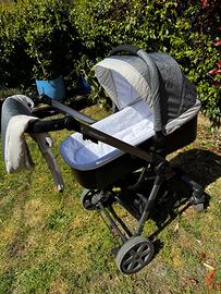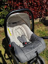 Vendo sistema combinato composto da: Navicella, Passeggino e Seggiolino auto. Sono inclusi cesto portaoggetti, coprigambe e parapioggia. Passeggino con seduta reversibile (fronte/strada - fronte/genitore) Capottina richiudibile e removibile, con finestrella osserva bimbo. Schienale Reclinabile a più posizioni. Imbragatura a 5 punti regolabile con protezioni pettorali. Ruote anteriori piroettanti con dispositivo di bloccaggio. Freno di stazionamento a pedale. Navicella rapido sistema di aggancio al telaio. Copertina imbottita rimovibile. La capottina è pieghevole e può essere rimossa. Pratico maniglione per trasporto. Seggiolino auto si fissa facilmente al telaio con sistema di aggancio/sgancio. Dotato di capottina parasole regolabile e di riduttore interno primi mesi. Pratico maniglione per trasporto.