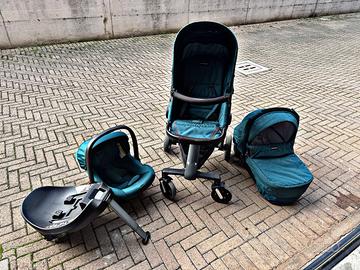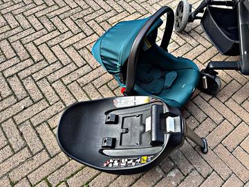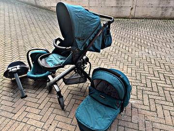 * Sistema combinato composto da: Navicella, Passeggino e Seggiolino auto i-Size. Telaio in alluminio, maniglione rivestito in EVA. Sono inclusi cesto portaoggetti, coprigambe e parapioggia. Testato a Normativa Europea.