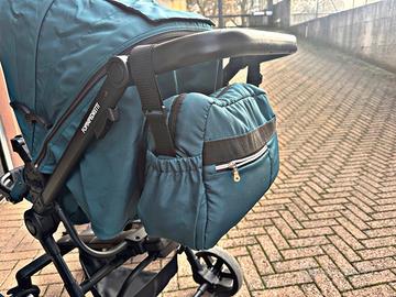 * Passeggino: per bambini da 6 mesi a 15 kg (circa 3 anni), chiudibile a libro con seduta reversibile (fronte/strada - fronte/genitore) Capottina richiudibile e removibile, con finestrella osserva bimbo. Schienale Reclinabile a più posizioni. Imbragatura a 5 punti regolabile con protezioni pettorali. Ruote anteriori piroettanti con dispositivo di bloccaggio. Freno di stazionamento a pedale.