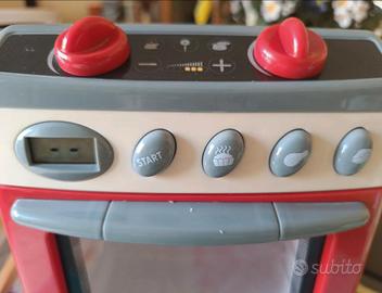 forno gioco bambini con luci e suoni utilizzati due o tre volte praticamente è nuovo funziona con pile. comprende una grigia, una teglia , due polli e una coscia di pollo. 24 cm altezza, 20 cm larghezza e 12 cm di profondità.