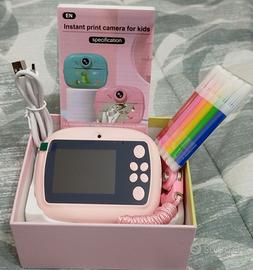 Fotocamera digitale per bambini con stampa istantanea, decorata con simpatici unicorni e arcobaleni. Perfetta per i più piccoli. - Design colorato e divertente. - Stampa foto in tempo reale. - Facile da usare. - Aspetto adorabile e accattivante. - Colore rosa vivace. - Funzione di ripresa e riproduzione video - Lettore musicale - Giochi interattivi