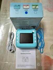 Fotocamera digitale con stampa istantanea Fotocamera digitale con stampa istantanea, dal design simpatico e divertente. - Aspetto adorabile e accattivante. - Stampa foto istantanee. - Colore azzurro. - Funzione di ripresa e riproduzione video - Lettore musicale - Giochi interattivi 20 euro