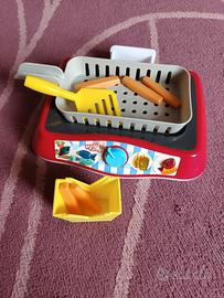 Friggi friggi Giochi preziosi grazie all'acqua fretta permette di cambiare colore al cibo in modo da renderlo più realistico e di conseguenza sembra cotto, funziona con 4 pile Aa da 1,5 volt, scatola originale, usato pochissimo, ottime condizioni