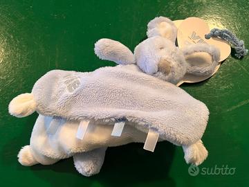 Scarpe da neonato modello friulane in velluto blu (taglia 18) + doudou azzurro.