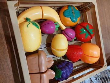 Cestino con frutta e verdura giocattolo per affinare l'abilità del taglio.