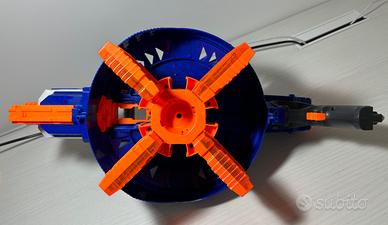 Fucile motorizzato di casa Nerf. Nell'articolo sono inclusi 4 caricatori con 20 dardi. Necessita di 4 pile di tipo AA per funzionare (non incluse).
