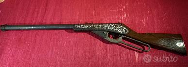 2)Fucile Mebetoys, made in Italy, ad aria compressa, con decorazioni e meccanismo a leva. Riproduzione del fucile Winchester di fine 800 (divenuto famoso nel far west) col meccanismo a leva che gli consentiva di sparare cartucce a ripetizione. Si carica e spara (a salve).