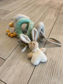 3 attività di gioco: coniglietto, nuvola con specchio, sonaglio ad anello.