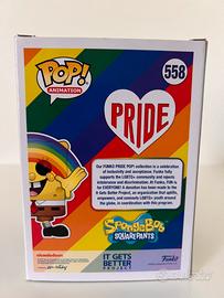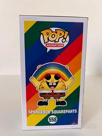 Vendo Funko POP! Animation Pride SpongeBob SquarePants #558, edizione Pride 2020, nuovo e sigillato. Il personaggio è il classico SpongeBob “Rainbow/Pride” della linea Animation, uscito nel 2020.  Condizioni: •scatola sigillata •mai aperto •box in buone condizioni generali •conservato con cura Perfetto per collezionisti Funko e fan di SpongeBob. Spedizione accurata e imballo protetto.