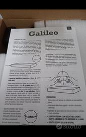 "Una piccola terra gira e rimane sospesa sopra un fondamentale sostegno: la riproduzione del frontespizio della prima edizione del "Dialogo sopra i due massimi sistemi" di Galileo, proprio chi contribuì a darle la sua giusta collocazione nell'universo. L'elettromagnetismo fa levitare il globo che può anche illuminarsi. Funziona a corrente di rete, alimentatore incluso. " Città del sole