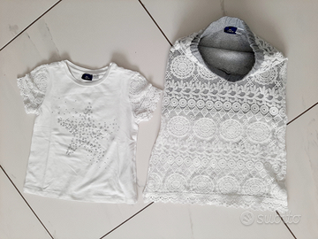 2 vestiti maniche corte taglia 3/4 anni con loghi visibili sulla vita e sul retro.