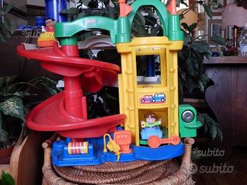 Parcheggio multipiano della Fisher Price come nuovo, con ascensore, completo di due macchinine e due personaggi.
