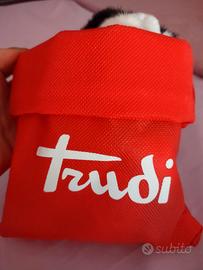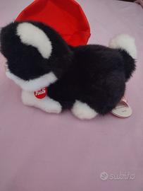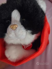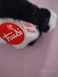 Gattino peluche Trudi bianco e nero, nel suo sacchetto rosso originale. Lunghezza circa 15 cm. Nuovo.