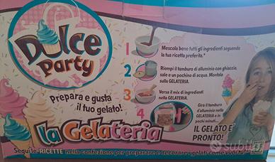 Gelatiera usata solo una volta, oggetti ancora nella confezione originale, mai aperti. Ottimo gioco ma fa anche il gelato per davvero, così i vostri bimbi possano farlo e gustarlo. Completo di accessori e in scatola originale.
