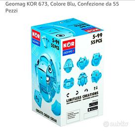 Vendesi Geomag KOR 673 azzurro 55 pz in ottime condizioni, completo di tutti i pezzi per le più diverse creazioni ma senza scatola. Si allegano foto della scatola. Gioco adatto a partire da 5 anni.