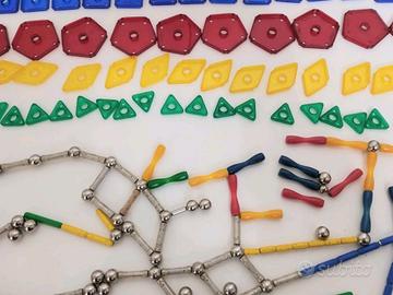 Geomag. Set di costruzioni magnetiche 207 pezzi colorati e assortiti. - Pezzi quadrati blu. - Pezzi a forma di pentagono rossi. - Pezzi a forma di rombo gialli. - Pezzi a forma di triangolo verdi. - Bacchette magnetiche di vari colori. Sfere e bacchette varie