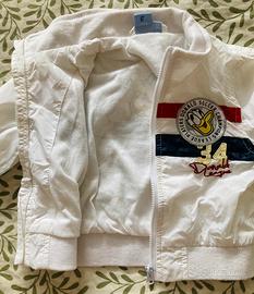 Giacca a vento marca Disney 3/6 mesi 68 cm color bianco con righe rosse e blu e donal duck davanti e dietro. Ottimo stato