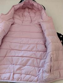 Giacca a vento reversibile nel colore rosa o nero con stelle rosa. Tasche interne su entrambi i colori. Comoda chiusura con cerniera. Cappuccio. Marchio Benetton come visibile LOGO sul gancio cerniera. Non presente etichetta interna per la reversibilità del capo. Usata ma in ottimo stato . Anni 3