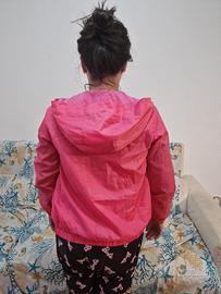 Giacca antivento bambina United Colors of Benetton, taglia 11-12 anni (160 cm 2xl), colore rosa con cappuccio e 2 tasche laterali