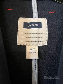 Giacca blu bambino Okaidi Tg 8 anni. Ha 2 tasche sul davanti e si chiude con 2 bottoni. Le maniche sono rifinite con 3 bottoni. Misure: larghezza cm 35 lunghezza cm 50 circa. Cotone/poliestere.