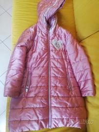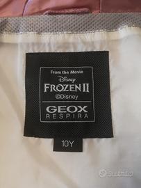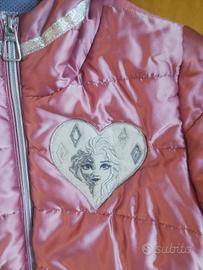 Piumino lungo con cerniera e cappuccio. Interno con immagine Frozen. Taglia 10 anni