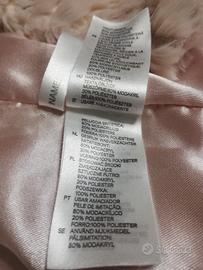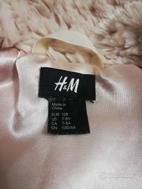Bellissima giacca di pelliccia, colore beige rosato, della H&M per bambine di 7/8 anni, altezza di circa 128 cm. Chiusura con bottoni a pressione. 2 tasche laterali. La pelliccia è sintetica, in modacrilico e poliestere. La fodera interna è in poliestere. In perfette condizioni, nuova, mai indossata.
