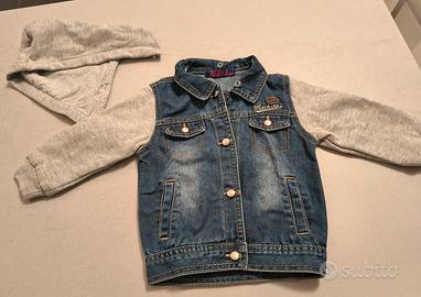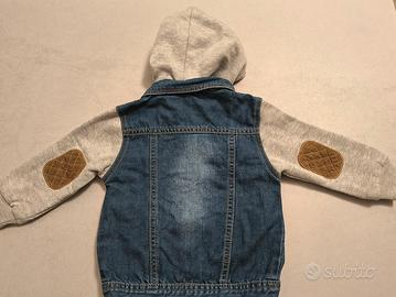 Giacca per bimbo in denim con maniche in felpa grigia e cappuccio staccabile. Guarda gli altri miei articoli da bambino: se sei interessato a più articoli faccio ottimi sconti!