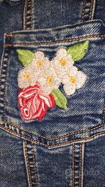 Bellissima giacca in jeans Monnalisa, con ricami, colletto morbidissimo, indossata pochissimo, ottime condizioni, taglia anni 10. Motivo Biancaneve.