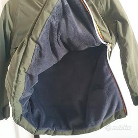 Giacca K-way misura 4 anni con cappuccio, impermeabile, imbottita e foderata internamente con pile, chiusura laterale, tasca centrale grande con apertura superiore + 2 tasche laterale