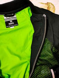 Giacca leggera bambino Piazza Italia, nera e verde fluo con rete, nuova, con cartellino Taglia 7/8 anni